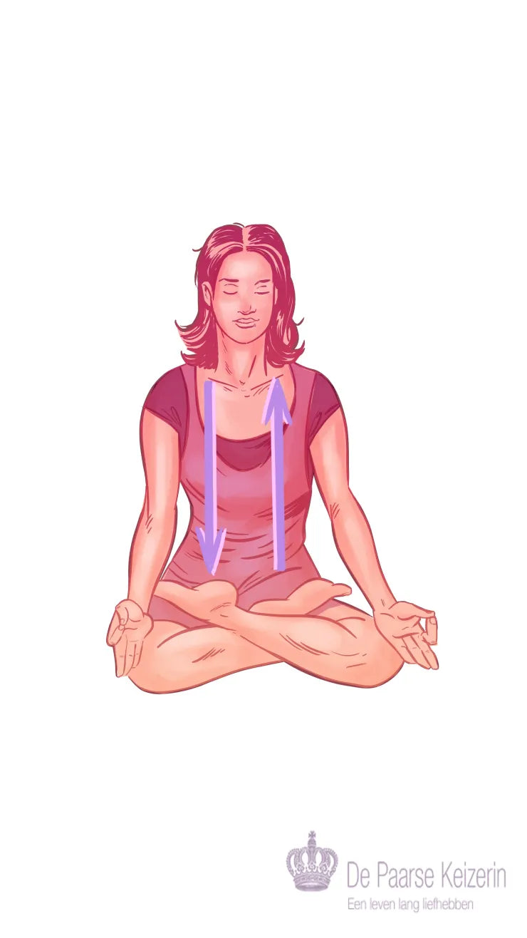 • Probeer krachtig uw bekkenbodemspier aan te spannen net voor het hoogtepunt. Adem een paar keer diep in en probeer de opgewekte energie in gedachten naar boven te trekken, richting uw hart. Laat deze uw borst vullen. Houd uw adem even vast, adem uit en laat alle spanning los.