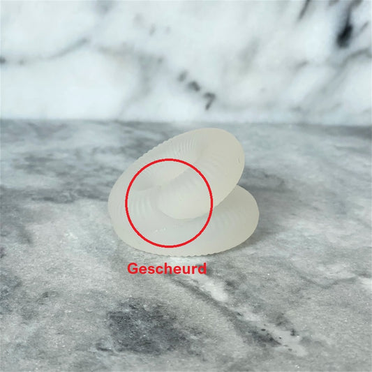 De ring is vrij stug en er moet flink wat kracht worden gebruikt om de ring op te rekken en om te doen. Dat is voor de ring funest omdat deze een kwetsbaar punt heeft waarbij deze ring dan scheurt.